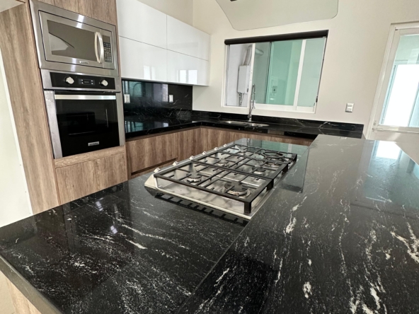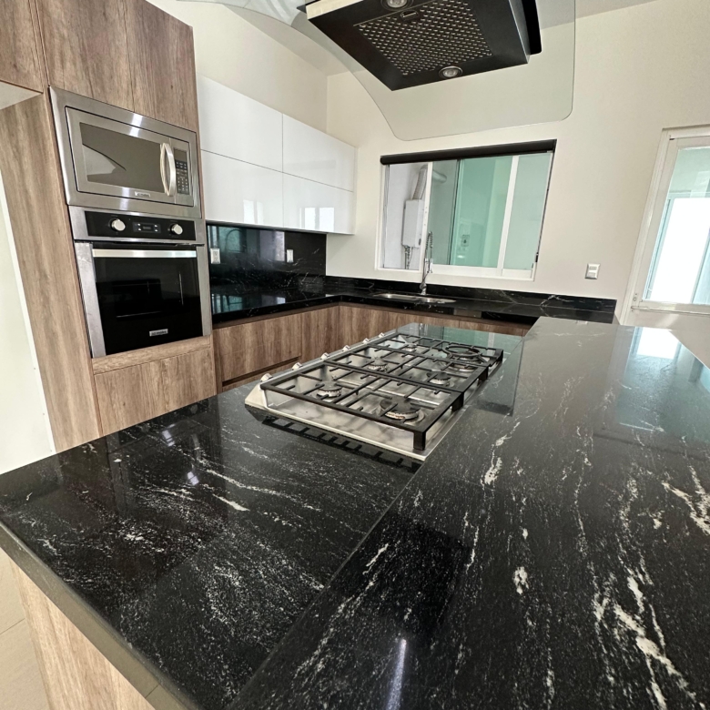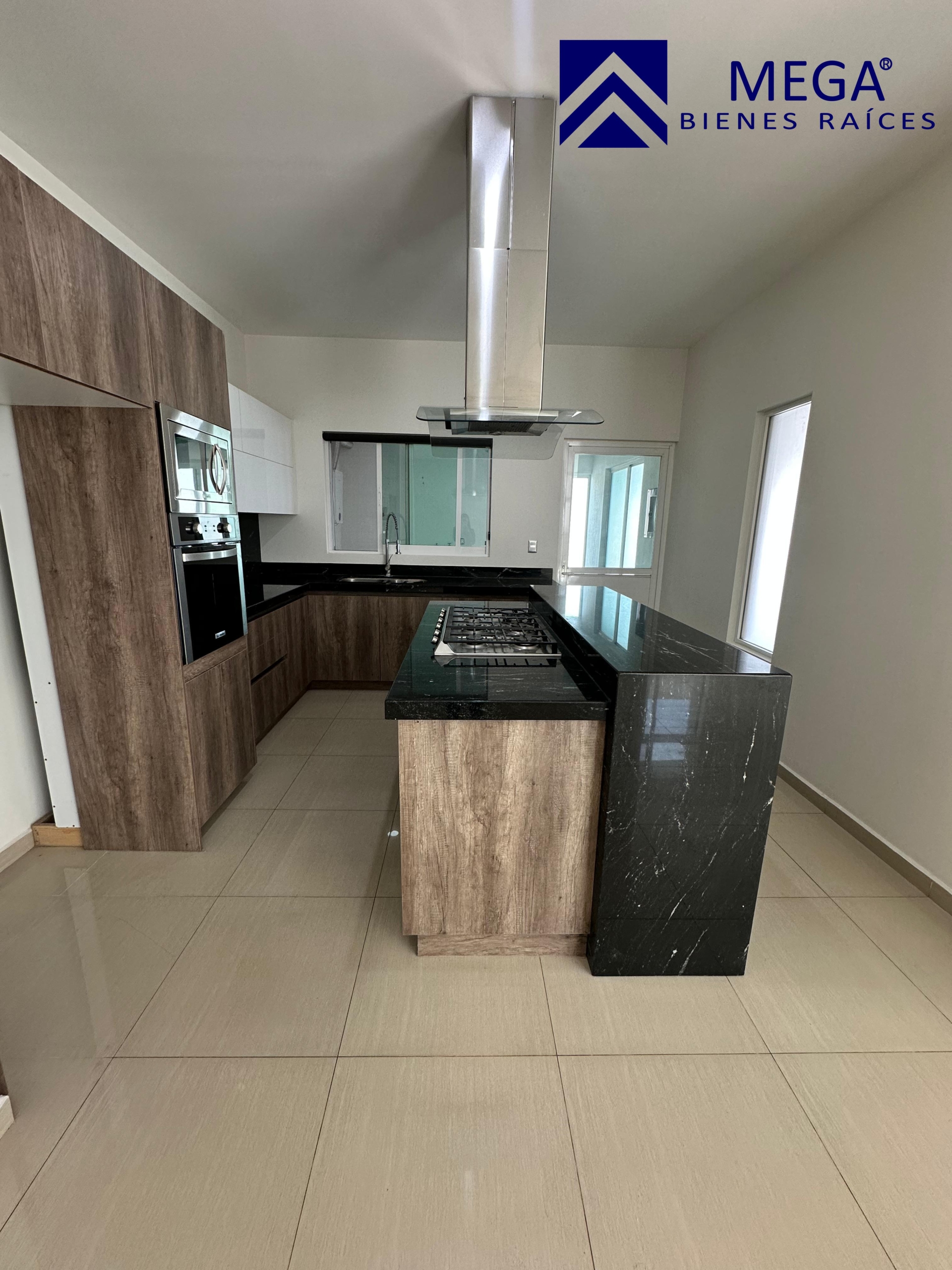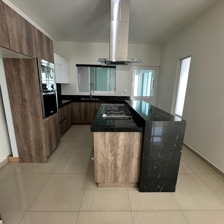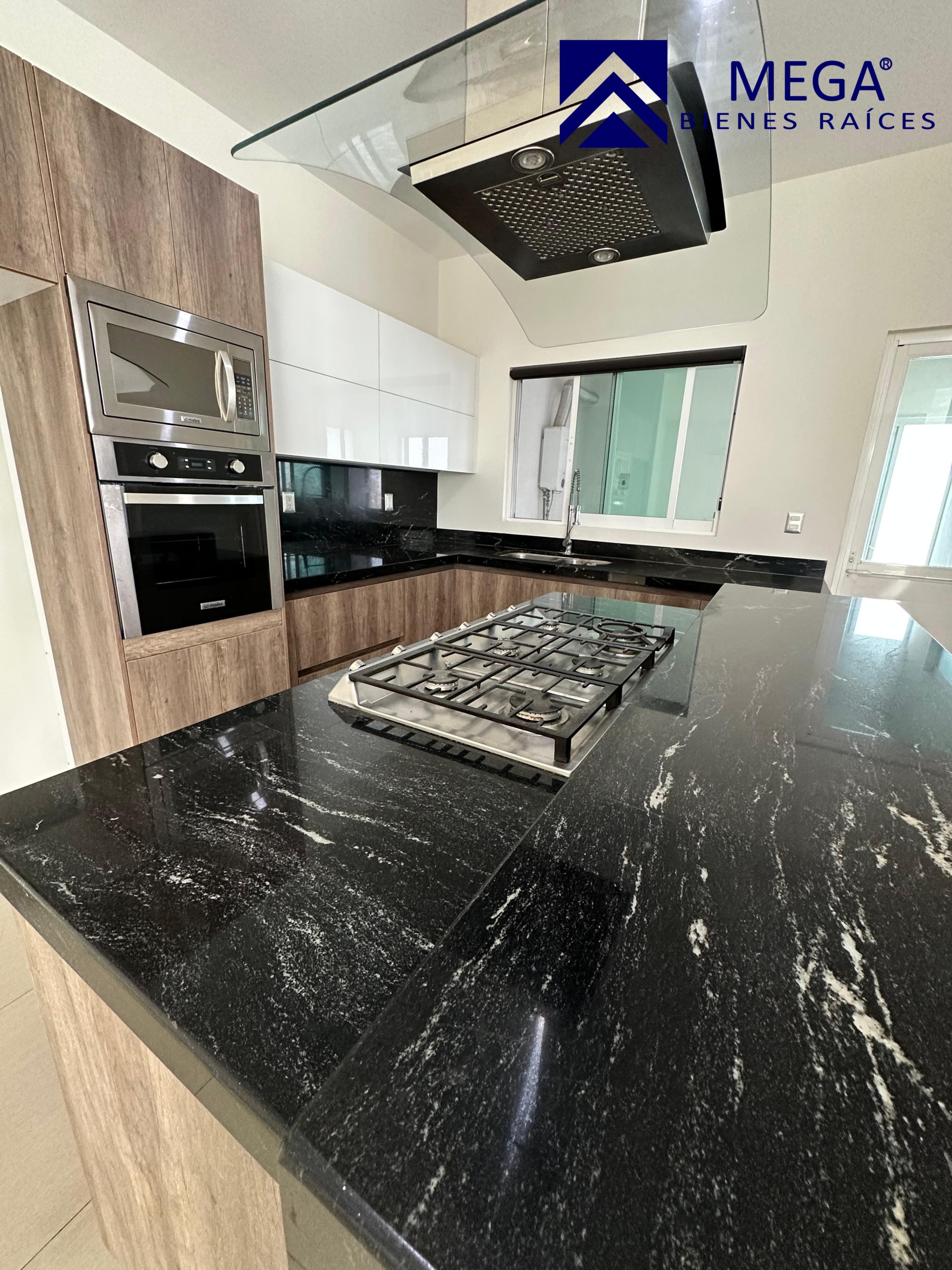 Cocina equipada con isla, horno , horno de microondas, parrilla, campana