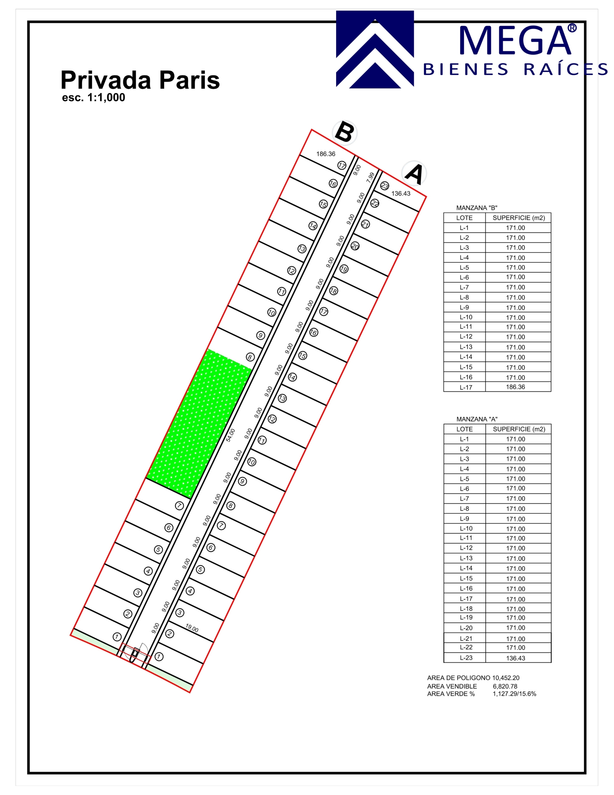 10 Lotes disponibles en Privada Paris, desde 171 mt2 de superficie (9×19), $4,400 por mt2 en financiamiento de hasta 40 meses sin intereses con enganche desde el 30%.