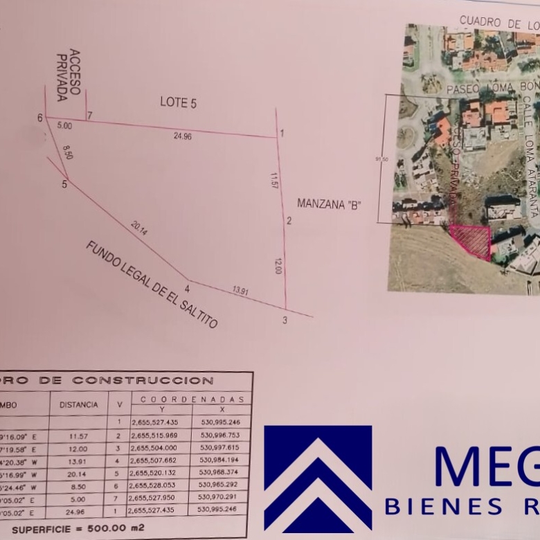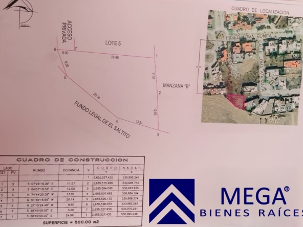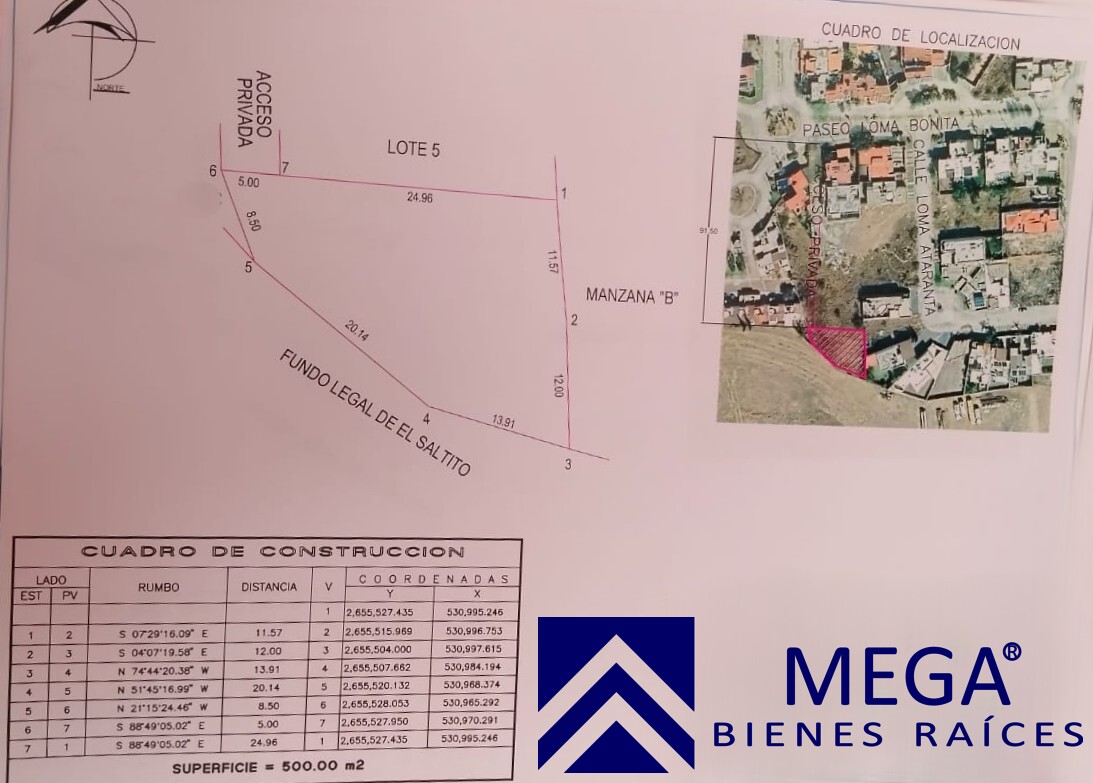 1 lote de 500 mt2, de forma irregular, ubicado en privada. Previa Cita.